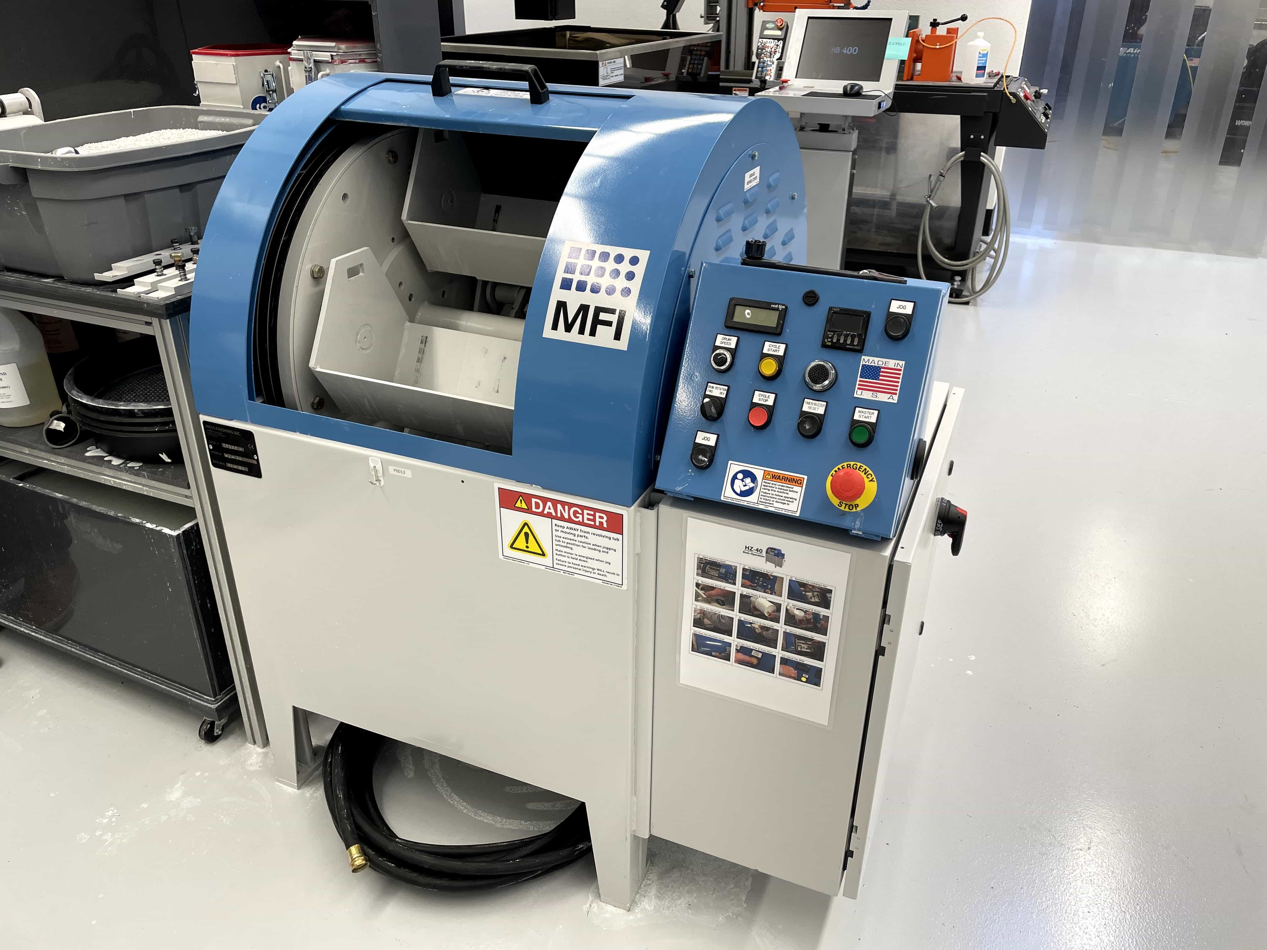 The HZ-40 is one of MFI’s most popular industrial finishing machines and is ideal for precision part manufacturers. The small footprint (4′ x 3′) makes it easy to fit into most productions without sacrificing any finishing speed or results. Moreover, its compact size and multiple barrel styles provide flexibility for work in nearly any industry. Despite its smaller stature compared to other stock barrel tumblers, HZ-40 centrifugal machine still packs the same high-end finishing punch as its bigger counterparts.